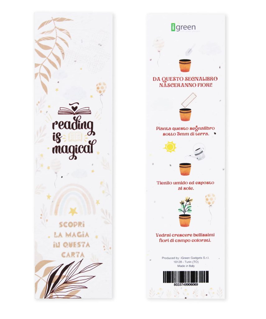 Enrich your reading experience with the plantable paper bookmark. It is an eco-friendly choice for book lovers and for the environment. It is made from a special seed paper that you can plant in soil. As a result, these bookmarks add style to your book. At the same time, they offer an eco-sustainable gesture that reduces environmental impact. In addition, they improve your reading experience. They also create a keepsake that connects you with nature. Moreover, they give you the chance to grow a plant. This makes the experience more meaningful. For businesses, they are also very effective. They leave a strong impression on customers and partners. Therefore, they work as a gadget that conveys a positive message.Finally, they encourage reflection on the reuse of waste materials.
